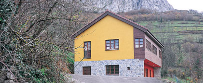 Rehabilitación de una antigua escuela. Amplias vistas sobre La Sobia, zona especialmente valorada para la escalada.