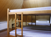 Distribución: Tiene 45 plazas en 6 habitaciones (literas), 9 servicios, 5 duchas y 11 lavabos. Comedor para 60 personas. Sala multiusos, calefacción, espacio para secar la ropa y las botas. Guardabicicletas y esquís. Aparcamiento propio.