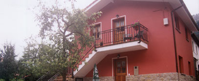 Casa de dos plantas rodeada de montañas y bosques, situada en un pueblo de alta montaña