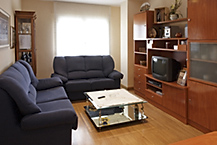 Distribución: El apartamento consta de 3 plantas. Planta baja: salón con TV y baño con ducha, terraza con toldo y mobiliario y jardín con barbacoa y columpios. Planta primera: 2 habitaciones dobles y 1 individual, baño completo con bañera, cocina equipada, salón-comedor con TV y equipo de música. Planta segunda-ático: 1 habitación cuádruple.