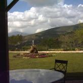 Desde el salón comedor y a través de una amplia cristalera, sentado frente al Almadén se puede percibir el murmullo de las aguas de la cascada que hay dentro del restaurante. En este acogedor ambiente, el cocinero puede prepara magníficos platos del lugar y otros de su propia escuela.