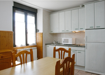 Distribución: Situado en la segunda planta, consta de una habitación doble y una individual, un baño, cocina equipada y salón-comedor con TV.