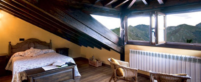 Casa de piedra y madera con típico corredor asturiano, terraza y jardín, con impresionantes vistas panorámicas, destacando el Monsacro y la Sierra del Aramo.