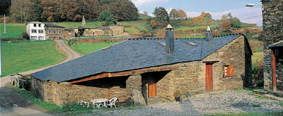 Núcleo de casas de labranza, de madera, pizarra y piedra.