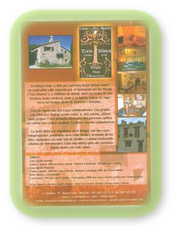 Los Alojamientos Rurales Singulares La Torre Blanca Alta y La Torre Blanca Baja están situadas en la pedanía de Riópar Viejo, antiguo emplazamiento de la localidad de Riópar, en la provincia de Albacete.