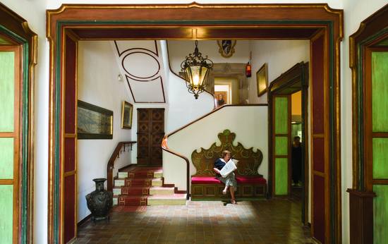 Un generoso vestíbulo, con espacios de estar y una decoración sin pretensiones, anuncia el carácter familiar del hotel. La decoración recuerda el largo historial del establecimiento: laboriosos dinteles de madera, arcones, piezas de cobre y lienzos de temas clásicos.