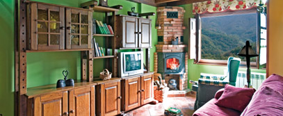 Casa restaurada en piedra y madera, con vistas al bosque de lindes y peña Rueda. Dispone de zona verde con mesas y barbacoa.