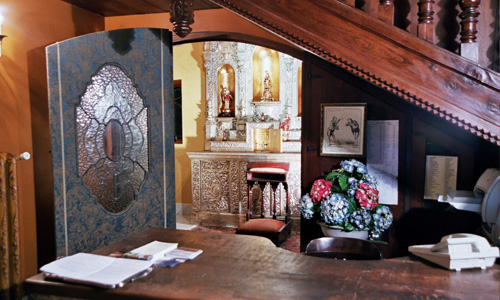 En la recepción del Hotel, una capilla con un retablo del siglo del XVII en pan de plata y pan de oro, sorprende gratamente a visitantes.