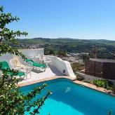 A la sombra de las parras, una piscina asoma sobre los tejados de Jimena.