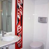 La decoración, obra del artista malagueño Pepe Bornoy, se basa en los colores rojos, blancos y negros. Sus cuadros convierten el Hotel en un espacio exclusivo y vanguardista donde el arte está presente en todos los rincones.