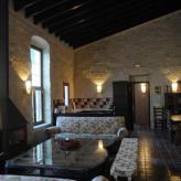 El comedor/salón es muy amplio (55m2), tiene chimenea, mesa para 24, sofás y cocina de convivencia (integrada en la misma estancia). Esta equipada con placa de vitrocerámica, horno, microondas, cafetera, tostador, nevera (211 cm) y menaje para 24.